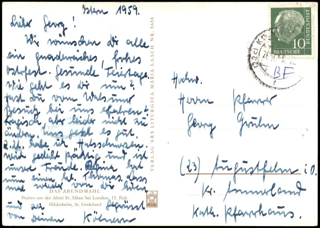 Hildesheim Kirche DAS ABEND MAHL Psalter aus Abtei St. Alban London 1959 Gold