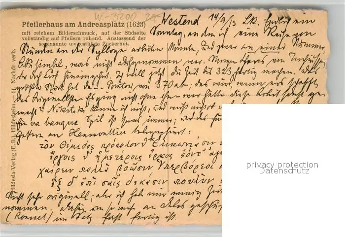 Hildesheim Pfeilerhaus am Andreasplatz Hildesheim postalisch nicht gelaufen 1913 Erhaltung siehe scans [KathaD81] Kathoren