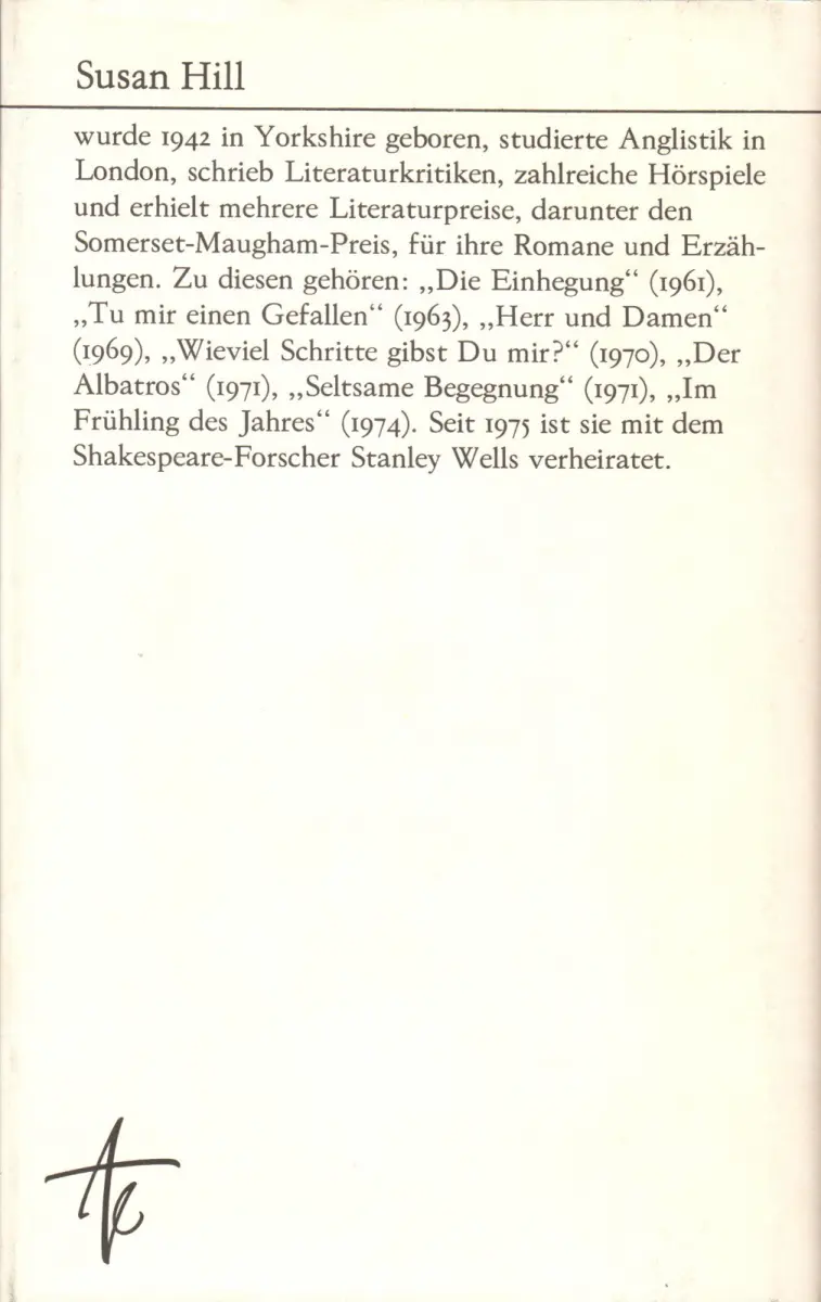 Hill, Susan; Seltsame Begegnung, Roman, 1982