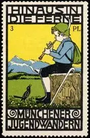 Spendenmarke Münchener Jugendwandern, Wandern, Kind, Flöte, Größe/Zustand: 6x4 , guter Zustand, Original alte Reklamemarke die seinerzeit für die Werbung benutzt wurde