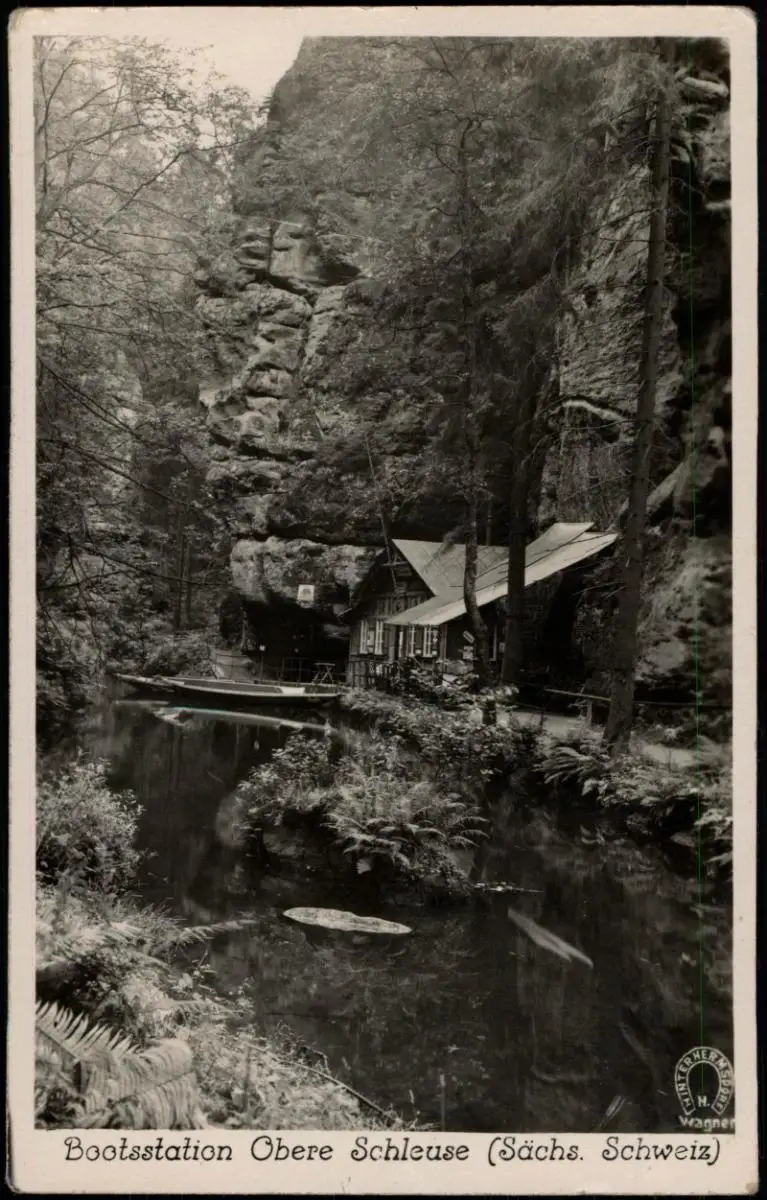 Hinterhermsdorf-Sebnitz Bootstation Obere Schleuse - Fotokarte 1953