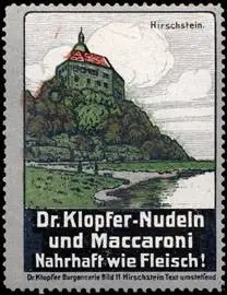 Dr. Klopfer - Nudeln und Maccaroni, nahrhaft wie Fleisch ! Burgenserie Bild 11, Text umstehend, Größe/Zustand: 5x4 , guter Zustand, Original alte Reklamemarke die seinerzeit für die Werbung benutzt wurde