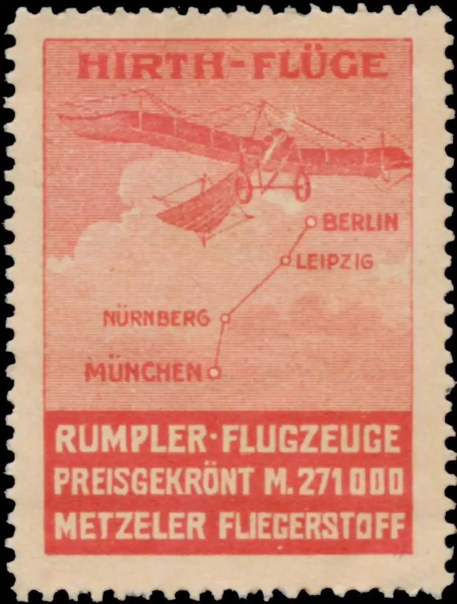München, Nürnberg, Leipzig, Berlin, Flugmarke, rot, Größe/Zustand: 4x3 , guter Zustand, Original alte Reklamemarke die seinerzeit für die Werbung benutzt wurde