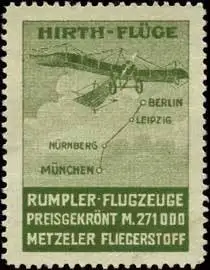Rumpler - Flugzeuge - Preisgekrönt M. 271.000 - Metzeler Fliegerstoff. Grün, Flugmarke, Größe/Zustand: 4x3 , guter Zustand, Original alte Reklamemarke die seinerzeit für die Werbung benutzt wurde