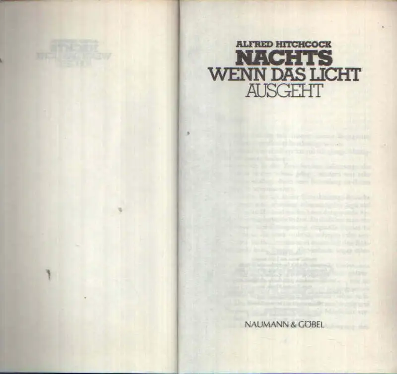Nachts wenn das Licht ausgeht; Alfred Hitchcock; Krimi; Kriminalgeschichten; Thriller; Die Flugzeugentführung; Ein Fall von Ruhestörung; Auf gute Nachbarschaft; Der Tod des Richters; Das Schwert des Damokles; Ein ganz einfacher Mordfall; Ein Besonderer Duft; Die Zweiliterflasche; Die letzte Szene; Ein beschneidenes Leben; Undank ist der Welt Lohn; Gelee Royal; Kleine Füchse schlafen warm; Zombique; Die undichte Stelle; Held wider Willen; Der Flugzeugabsturz; Morgen ... und dann wieder morgen; Ein Hundeleben; Spaziergang im Mondschein