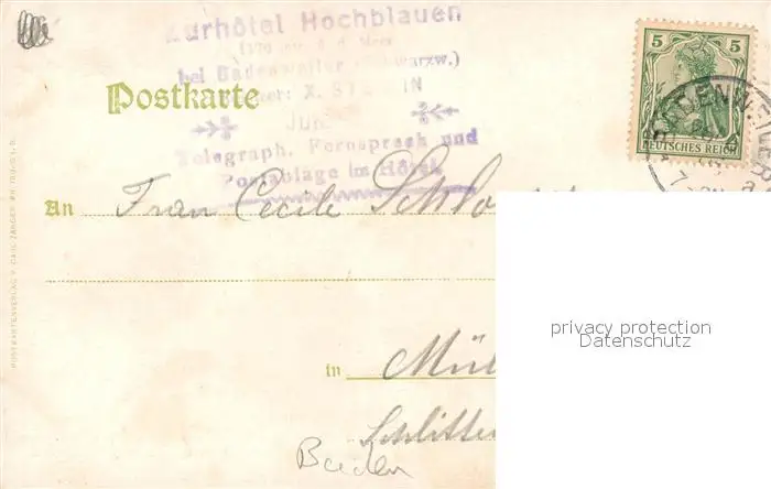Hochblauen Hotel Pension Hochblauen postalisch gelaufen bis 1920 Erhaltung siehe scans [KathaD81] Kathoren