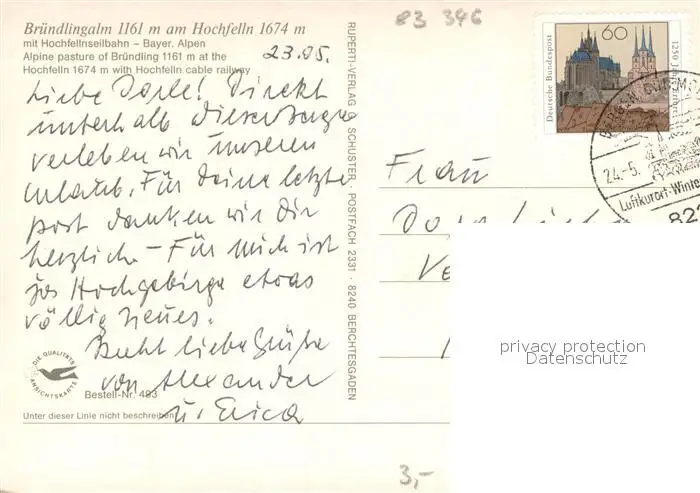 Hochfelln_Ruhpolding Bruendlingalm mit Hochseilbahn Hochfelln Ruhpolding postalisch gelaufen Erhaltung siehe scans [WerneD78] WernPID7