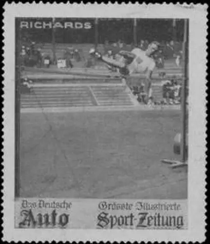 Alma Richards. Das Deutsche Auto-Grösste Illustrierte Sport-Zeitung, Größe/Zustand: 6x5 , guter Zustand, Original alte Reklamemarke die seinerzeit für die Werbung benutzt wurde