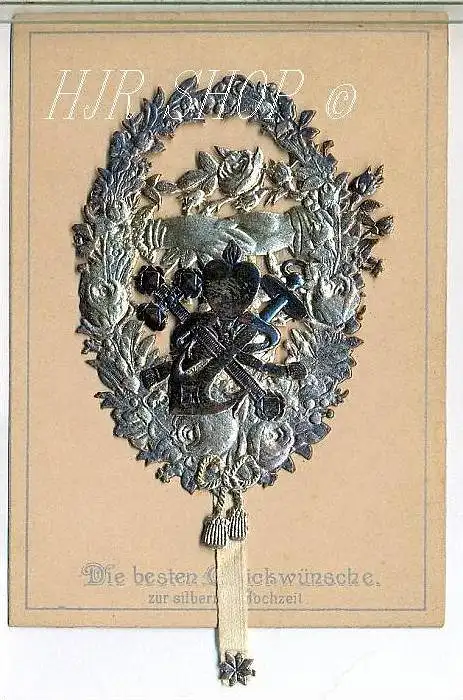 Hochwertige Glückwunschkarte zur Silberhochzeit, aus dem Jahre 1894, handwerklich besonders hübsch ausgearbeitet, bedruckt und sehr gepflegt