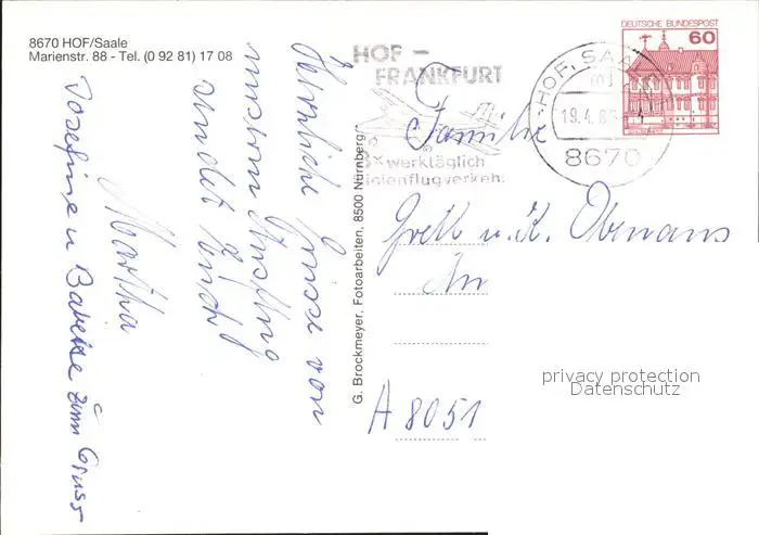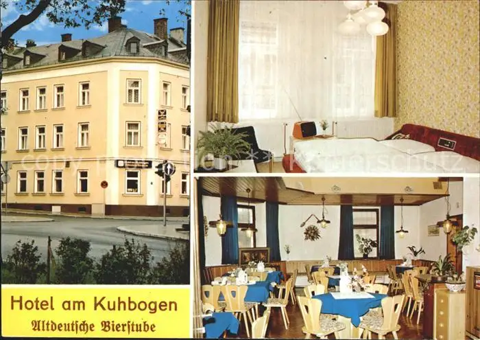 Hof Saale Hotel am Kuhbogen Hof postalisch gelaufen 1986 Erhaltung siehe scans Alte Ansichtskarte Postkarte NataID47