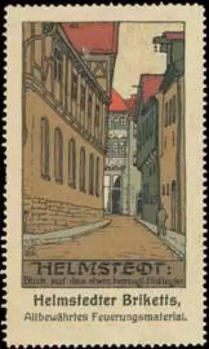 Blick auf das ehemalige Hoflager, Helmstedter Briketts, altbewährtes Feuerungsmaterial, Monogramm, Kohle, heizen, Größe/Zustand: 7x4 , guter Zustand, Original alte Reklamemarke die seinerzeit für die Werbung benutzt wurde