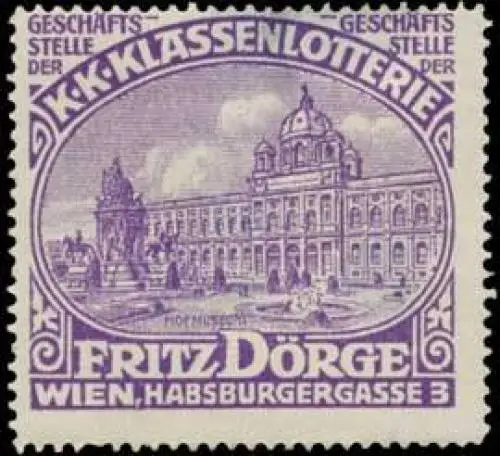 Fritz Dörge Geschäftsstelle der k.k. Klassenlotterie, Lotterie, Größe/Zustand: 4x4 , leicht beschädigt, Original alte Reklamemarke die seinerzeit für die Werbung benutzt wurde