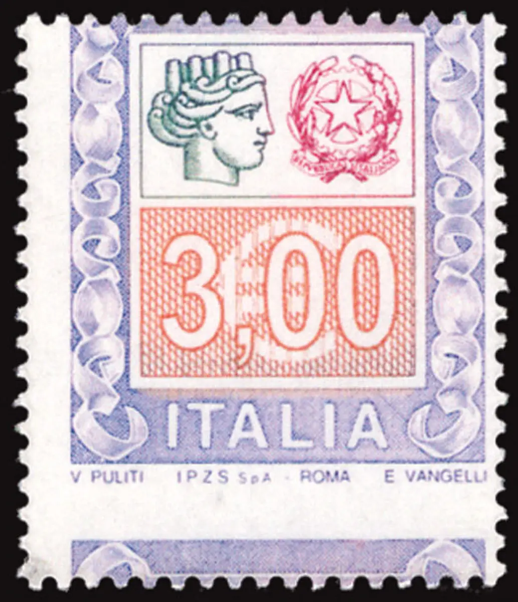 MNH - Vollgummi - Hohe Werte Euro 3,00 Nr. 2740 gummiseitig bedruckte Briefmarke mit stark verschobener horizontaler Verzahnung - Unveröffentlicht Cod. 946/17