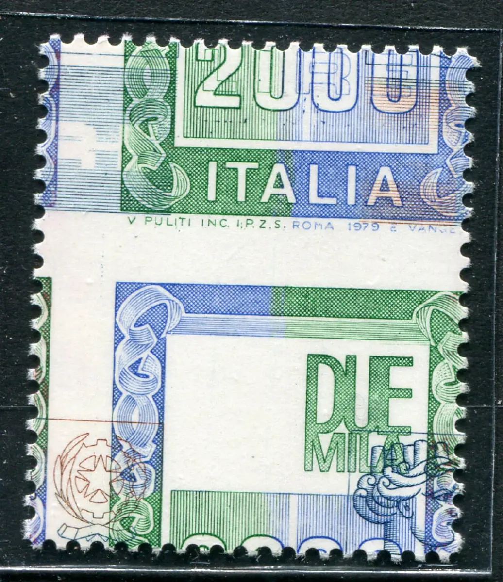 Hohe Lire-Werte 2.000 Sorten Verzahnung und Farben Vollgummi - MHN - - - Hohe Lire-Werte 2.000 Nr. 1439 mit stark in beide Richtungen verschobenen Zahnung und Mittelfarben - auffällig - Cod. 688/14