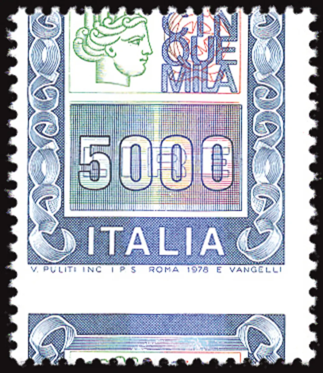 MNH - Vollgummi - - Hohe Werte Lire 5.000 Nr. 1442d mit stark nach unten verschobener horizontaler Verzahnung - Sorte aus dem Katalog unterboten - Kat. euro 200 Cod.701/182