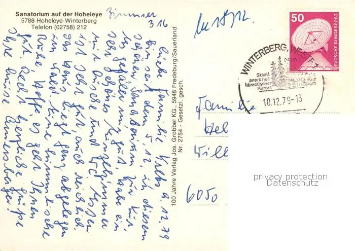 Hoheleye Sanatorium Hoheleye postalisch gelaufen 1979 Erhaltung siehe scans [KathaD81] Kathoren
