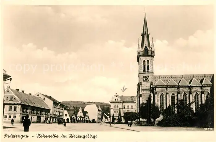 Hohenelbe_Tschechien Marktplatz Kirche Hohenelbe Tschechien postalisch nicht gelaufen 1921-1965 Erhaltung siehe scans [FriedD77] Frierer