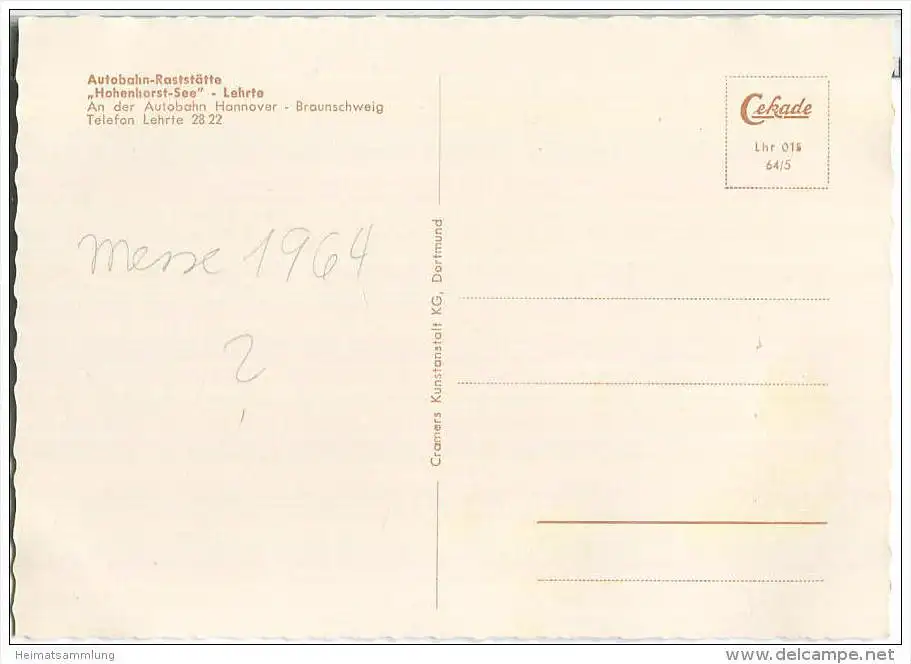Hohenhorstsee Lehrte - Autobahnraststätte - Verlag Cramer Dortmund (G37584) *