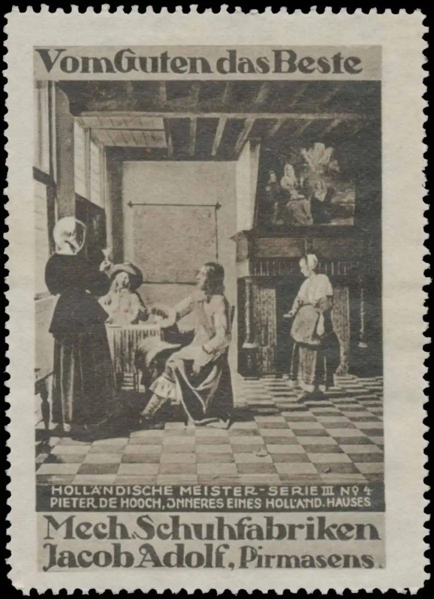 Holländische Meister-Serie III No. 4, vom Guten das Beste, Schuhe, Größe/Zustand: 7x5 , guter Zustand, Original alte Reklamemarke die seinerzeit für die Werbung benutzt wurde