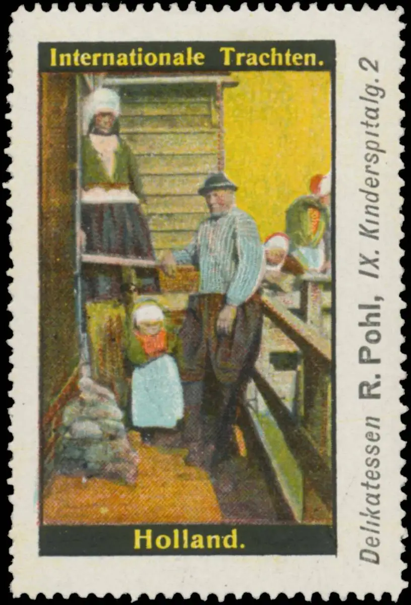 Serie: Internationale Trachten, Kinderspitalgasse 2, Größe/Zustand: 6x4 , guter Zustand, Original alte Reklamemarke die seinerzeit für die Werbung benutzt wurde