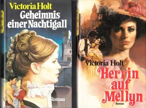 das andere Buch ist Erscheinungsjahr 1988, die Seiten sind teils leicht gebräunt oder fleckig, auf dem einen Umschlag sind Edikettrückstände, Herrin auf Mellyn: Martha Leigh nimmt eine Stellung als Hausdame auf Schloß Mellyn an. Ihre Schutzbefohlene, die kleine Alvean, ist ein verwöhntes, schwieriges Kind, und nicht nur deshalb hat Martha es schwer in dem düsteren, unheimlichen Haus. Eines Tages muß sie erfahren, daß den plötzlichen Tod der Schloßherrin noch immer ein Geheimnis umgibt... Geheimnis einer Nachtigall: Nach schweren Schicksalschlägen stellt Susanna Pleydell ihr Leben ganz in den Dienst an den Kranken und Verletzten. Durch ihre aufopferungsvolle Arbeit während des Krimkrieges lernt sie aber auch den Mann kennen, dem sie ihr ganzes Unglück zu verdanken glaubt... (von den Umschlägen) Beschreibung vom Antiquariat Ardelt 4d3a Antiquariat Ardelt