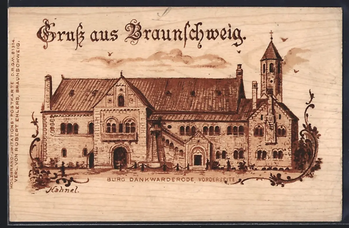 Holzbrand-Imitations-AK Braunschweig, Burg Dankwarderode, Vorderseite