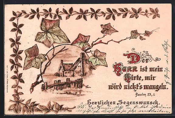 Holzbrand-Imitations-AK Der Herr ist mein Hirte, mir wird nichts mangeln