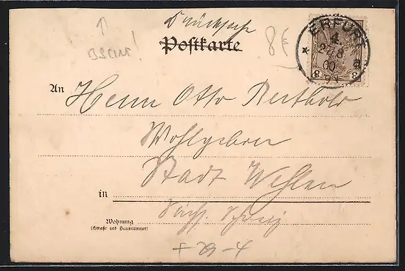 alte Ansichtskarte, gelaufen 1900, Eckknick re. unten, guter Zustand