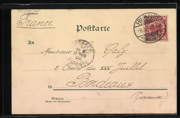alte Ansichtskarte, gelaufen 1900, guter Zustand