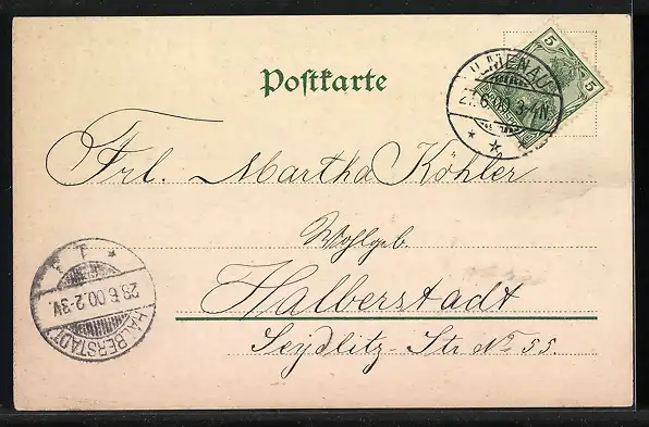 alte Ansichtskarte, gelaufen 1900, guter Zustand