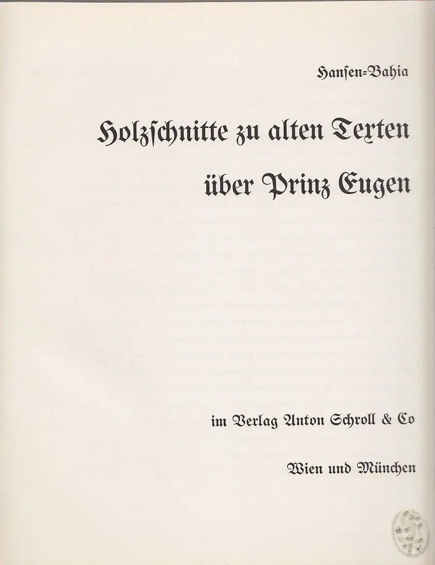Bemerkungen: Eines von 750 numerierten und v. Künstler signierten Exempl. Die Textfolge zu Hansen-Bahias Holzschnitten besteht aus meist gekürzten Abschnitten des 1730-1739 anonym erschienen Werks über die `Helden-Thaten Des grossen Feld-Herrns Eugenii`.