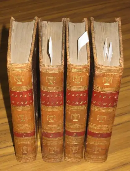 The works of Homer. Translated from the greek, into english verse, by Pope. Vol. I - VII in 4 books (Iliad. Odyssey). (With:) Homer's Battle of the Frogs and Mice. Translated by Mr. Parnell. Corrected by Mr. Pope. (And:) Notes and Commentaries on the Works of Homer
