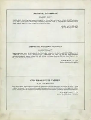 Honda CX 500 Turbo Reparaturanleitung ca. 1982