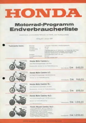 Honda Preisliste 1.1.1977