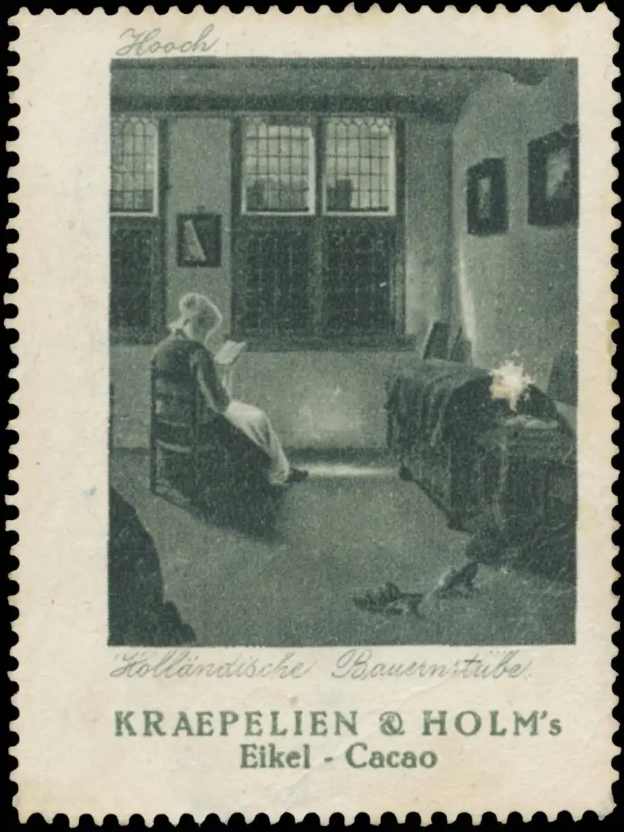 Eikel-Cacao, Niederlande, Größe/Zustand: 6x4 , beschädigt, Original alte Reklamemarke die seinerzeit für die Werbung benutzt wurde