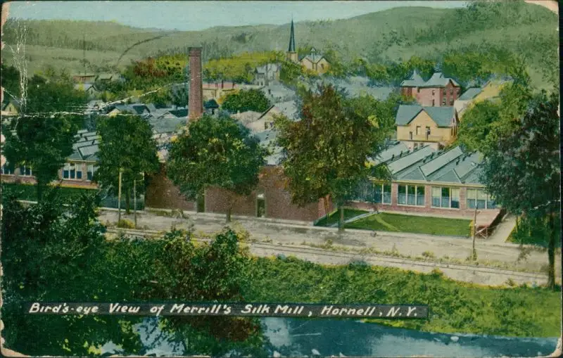 Hornell Bird`s eye view of Merrill`s Silk Mill/Fabrik und Mühlen Anlage 1912
