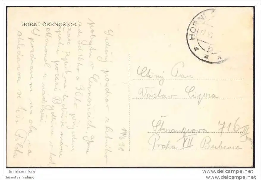 Horni Cernosice - Tschernositz - Briefmarke entfernt - leichte Gebrauchsspuren (E3873) gel. 1938