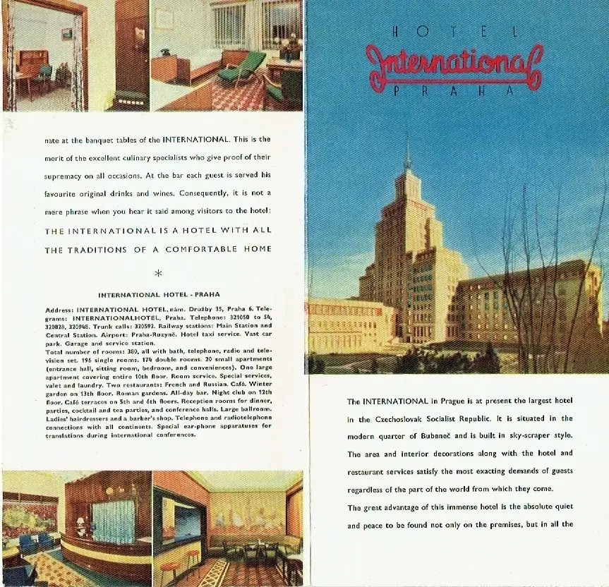 guter bis sehr guter Zustand, geringe Gebrauchs- und Alterungsspuren: teils leicht knittrig, Werbe-Prospekt mit Beschreibung des Hotels auf Englisch, Papier, ca. 11 x 21, 4 Seiten mit 9 Bildern