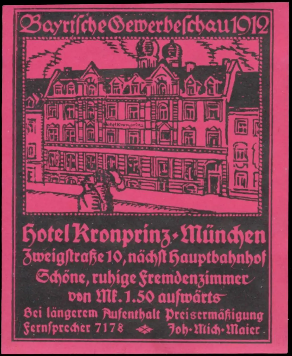 Bayerische Gewerbeschau 1912, Zweigstraße 10, Größe/Zustand: 6x5 , guter Zustand, Original alte Reklamemarke die seinerzeit für die Werbung benutzt wurde