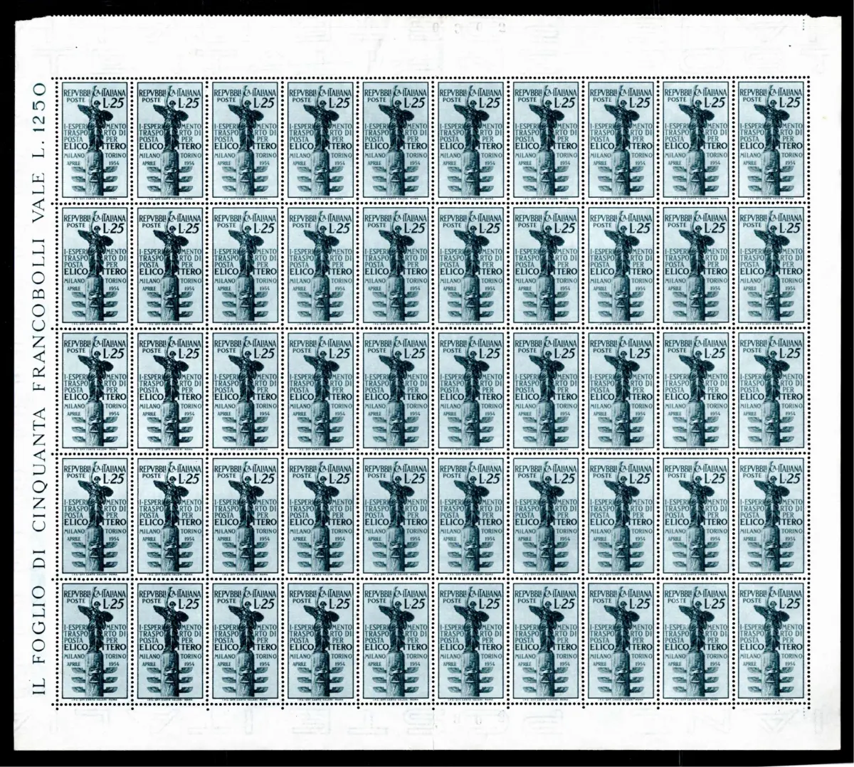 Hubschrauber Blatt der 3. Tafel Vollgummi - Hubschrauber Nr. 738 Blatt mit fünfzig Exemplaren der 3. Tafel - ausgezeichnete Zentrierung Cod. 416/13