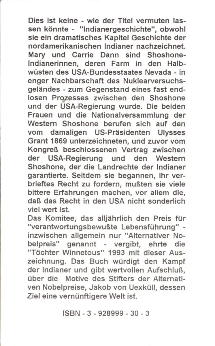 Huhn, Klaus Winnetous Töchter Warum Mary und Carrie Dann mit dem Alternativen Nobelpreis ausgezeichnest wurden Erscheinungsjahr: 1994