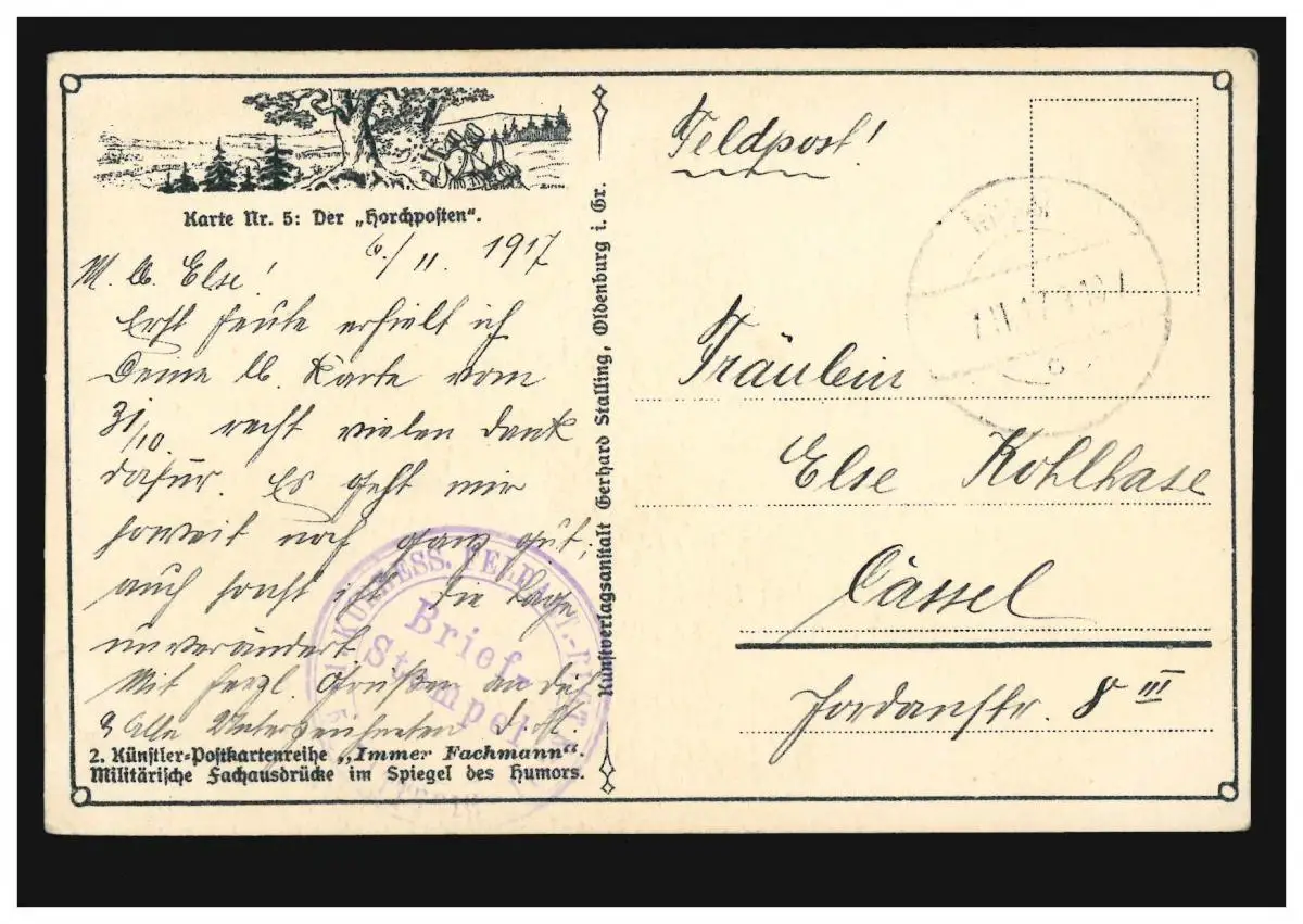 Humor-AK Landwirtschaft: Der Horchposten, Feldpost 7.2.17 mit BS Feldartillerie