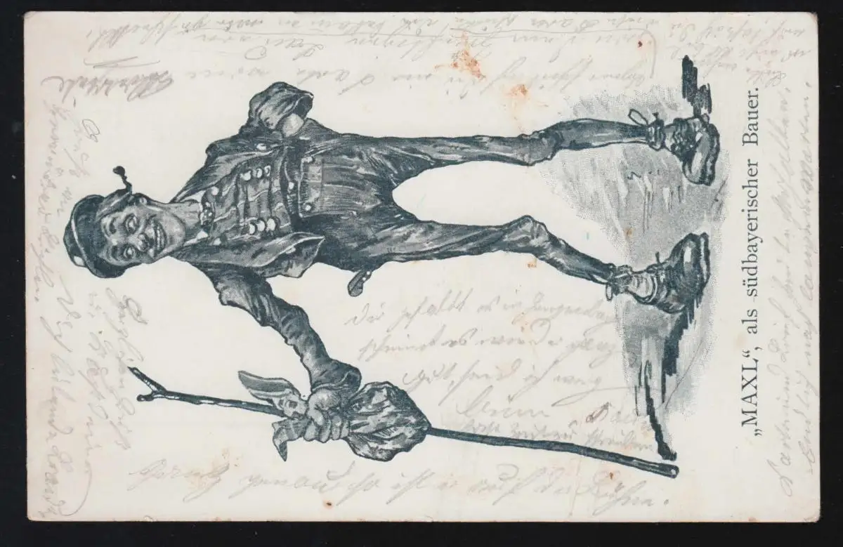 Humor-AK MAXL als südbayerischer Bauer, beschriftet, fleckig
