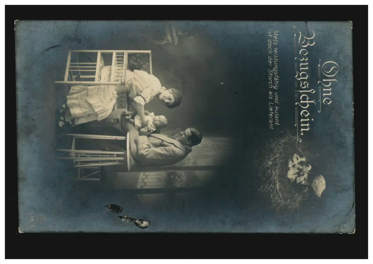 Humor-AK Ohne Bezugsschein - Storch als Lieferant, Feldpost 20.8.1917