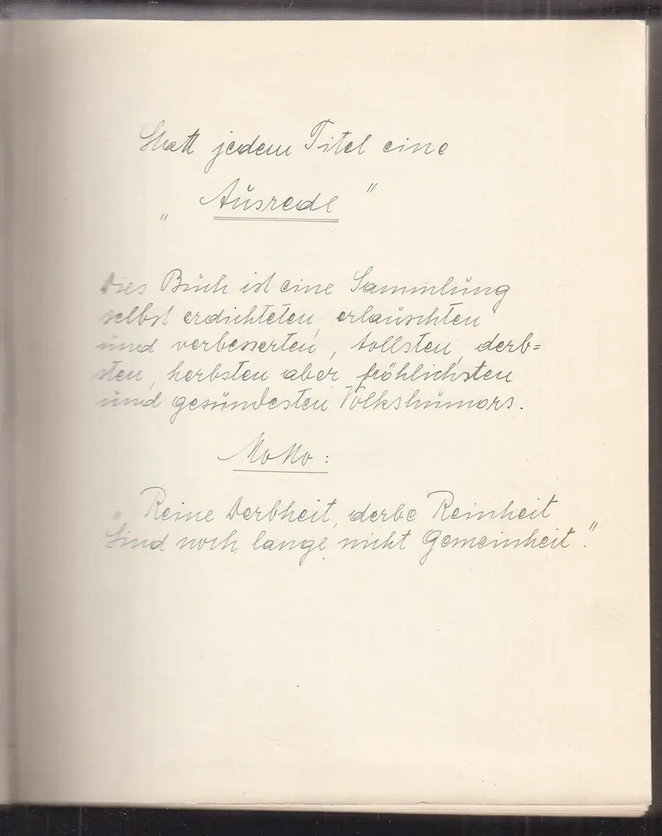 o. O., 20. Jhdt. gr.-8°. 262 S. handschriftliche Niederschrift von meist frivolen Witzen. HLdr.-Bd.