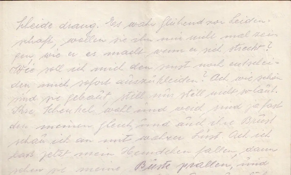 Bemerkungen: Mit einem handschriftlichen Text, 4 Blatt, beidseitig beschrieben. Ein sexuelles Erlebnis, eine Phantasie?