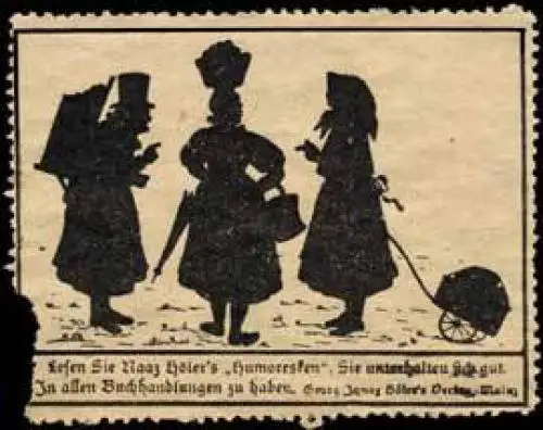 Lesen Sie Naaz Hölers Humoresken. Sie unterhalten sich gut. Judaika, Schattenspiel, Größe/Zustand: 5x6 , beschädigt, Original alte Reklamemarke die seinerzeit für die Werbung benutzt wurde