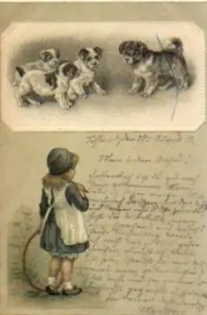 Hund mit Welpen Mädchen mit Reif o 20.8.1901
