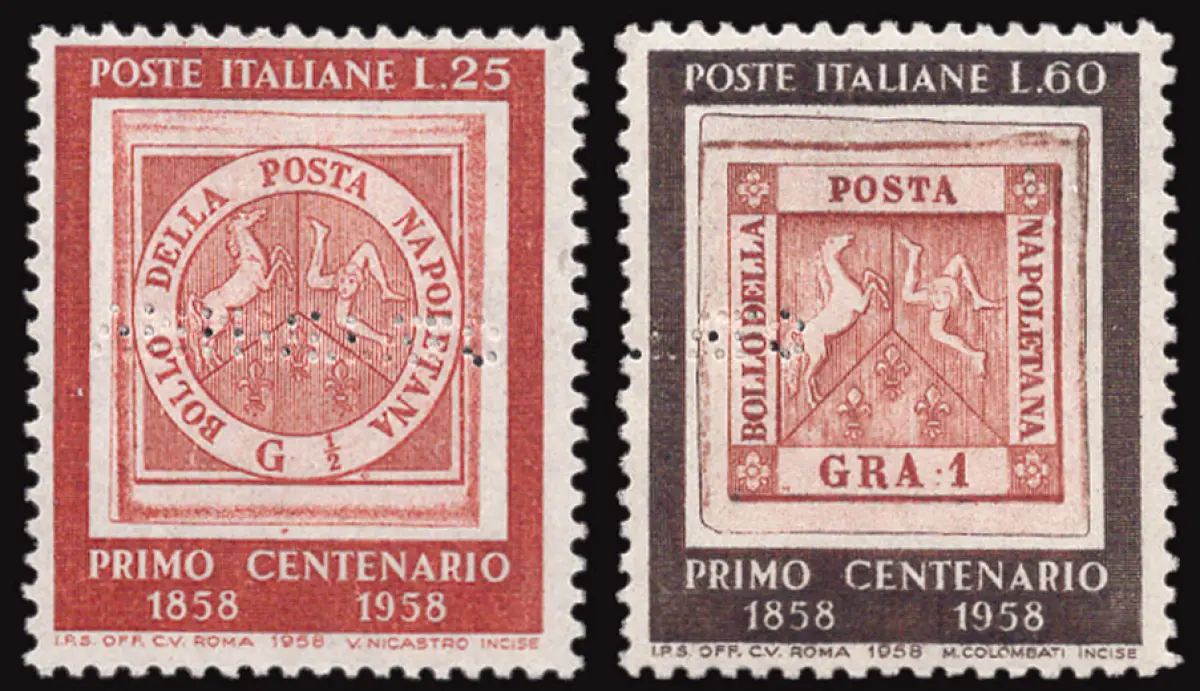 MNH - Vollgummi - Centenario di Napoli Nr. 840/841 zwei Werte mit Bohrung abgebrochen - Ungewöhnlich Cod. 797/17