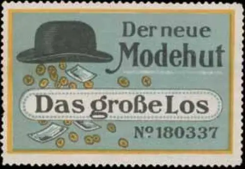 der neue Modehut, das große Los, Größe/Zustand: 4x6 , guter Zustand, Original alte Reklamemarke die seinerzeit für die Werbung benutzt wurde